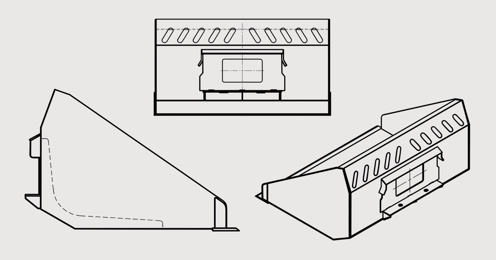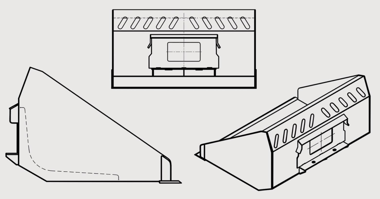 В задней части ковша располагается кронштейн для крепления к плите погрузчика. Универсальный ковш идеально подходит для работ в стесненных условиях, он с легкостью проходит в узкие проемы и двери стандартных размеров и справляется с любым видом работ.